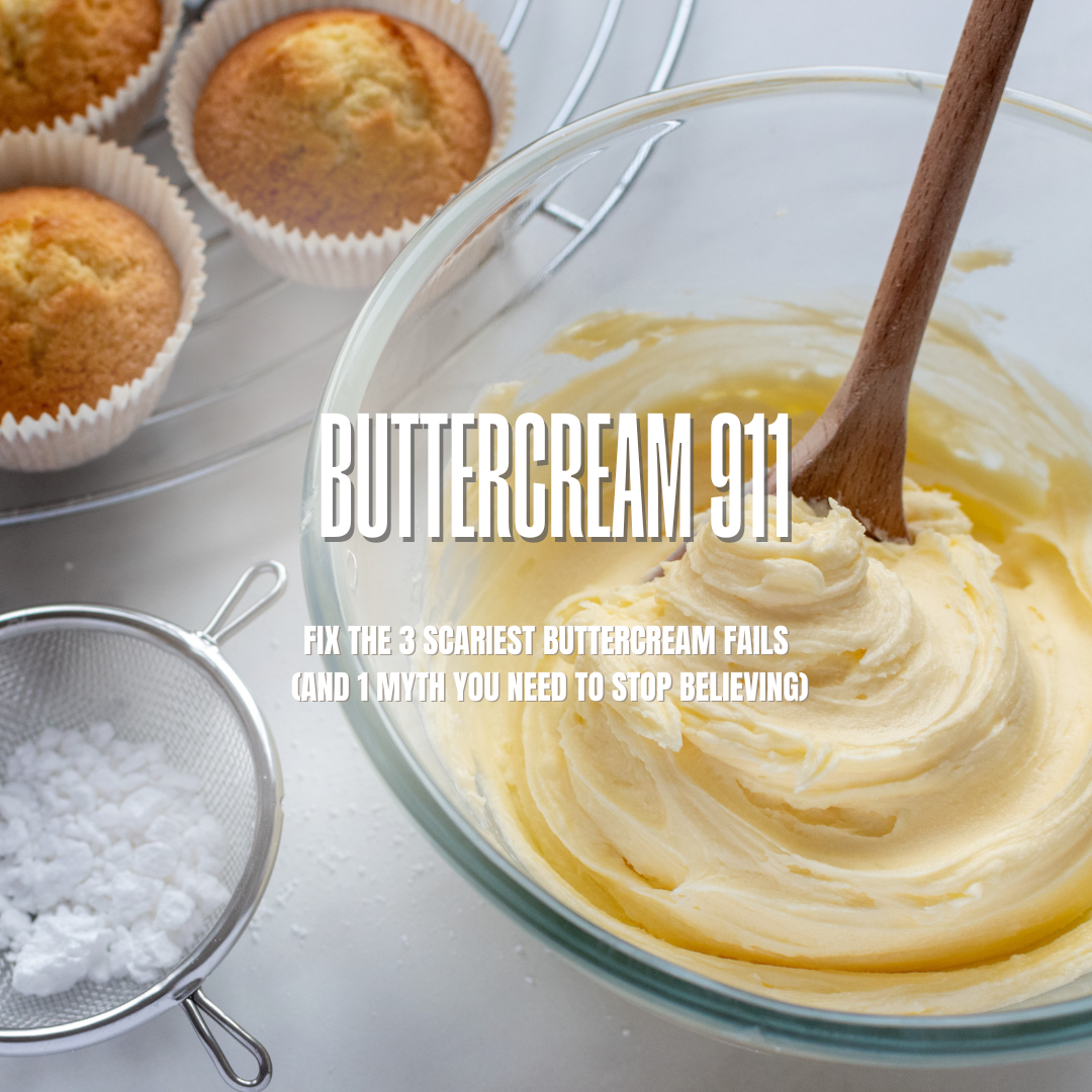 Get the "Buttercream 911" Guide—the free PDF & video that shows you how to diagnose and fix the 3 scariest buttercream fails.